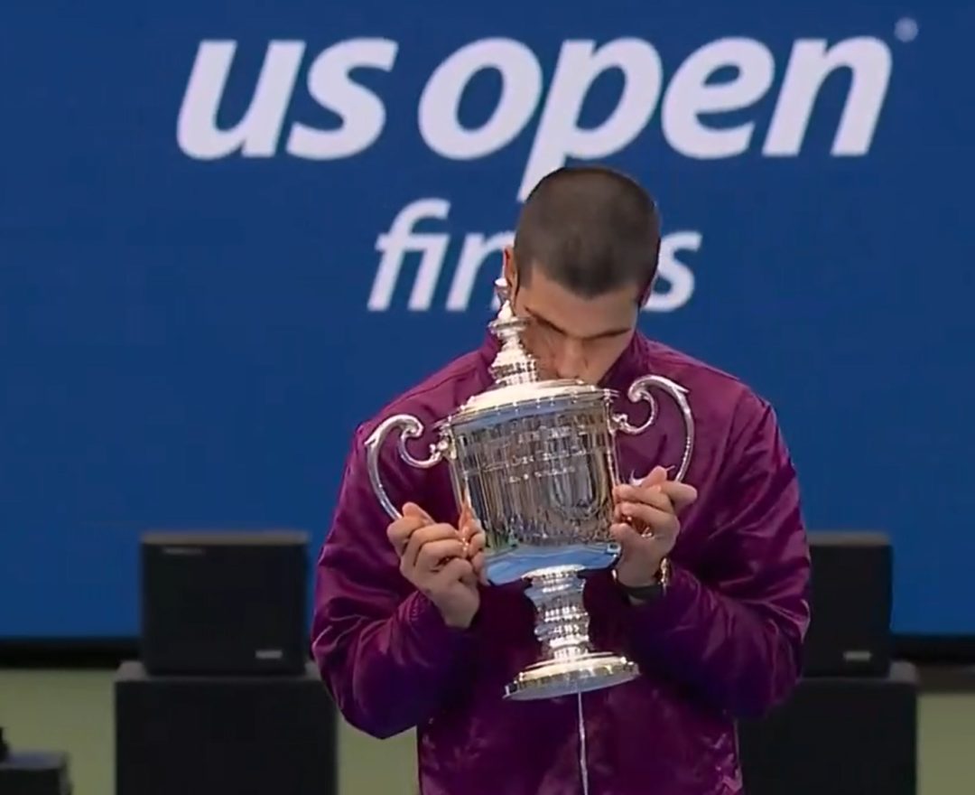 比赛结束后,阿尔卡拉斯笑着举起双臂,并与辛纳在网前拥抱。随后他跑进观众席,与团队拥抱、庆祝,他的父亲激动落泪。