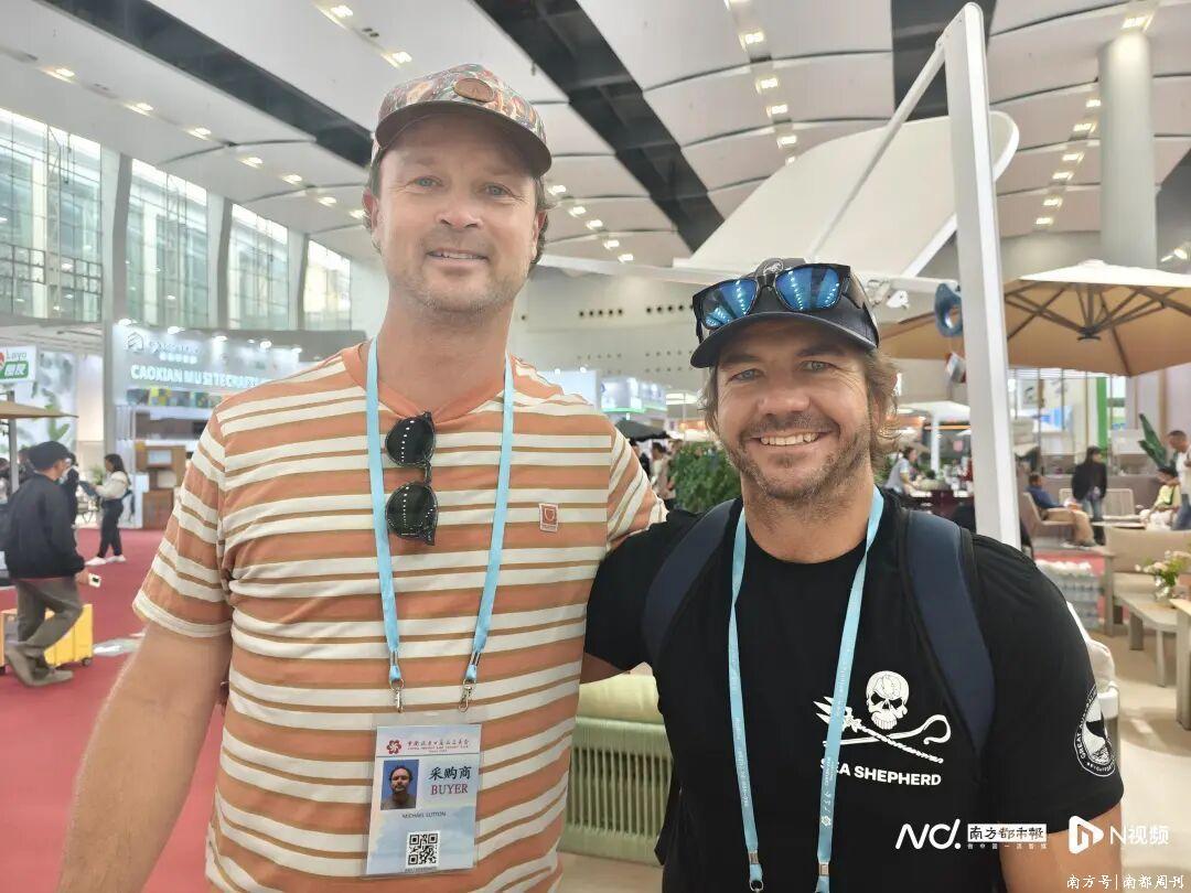 首次来广交会的澳洲买家SHAYNE BOYD和他的贸易伙伴。SHAYNE BOYD表示,可持续性是澳洲年轻消费者很看重的消费因素。